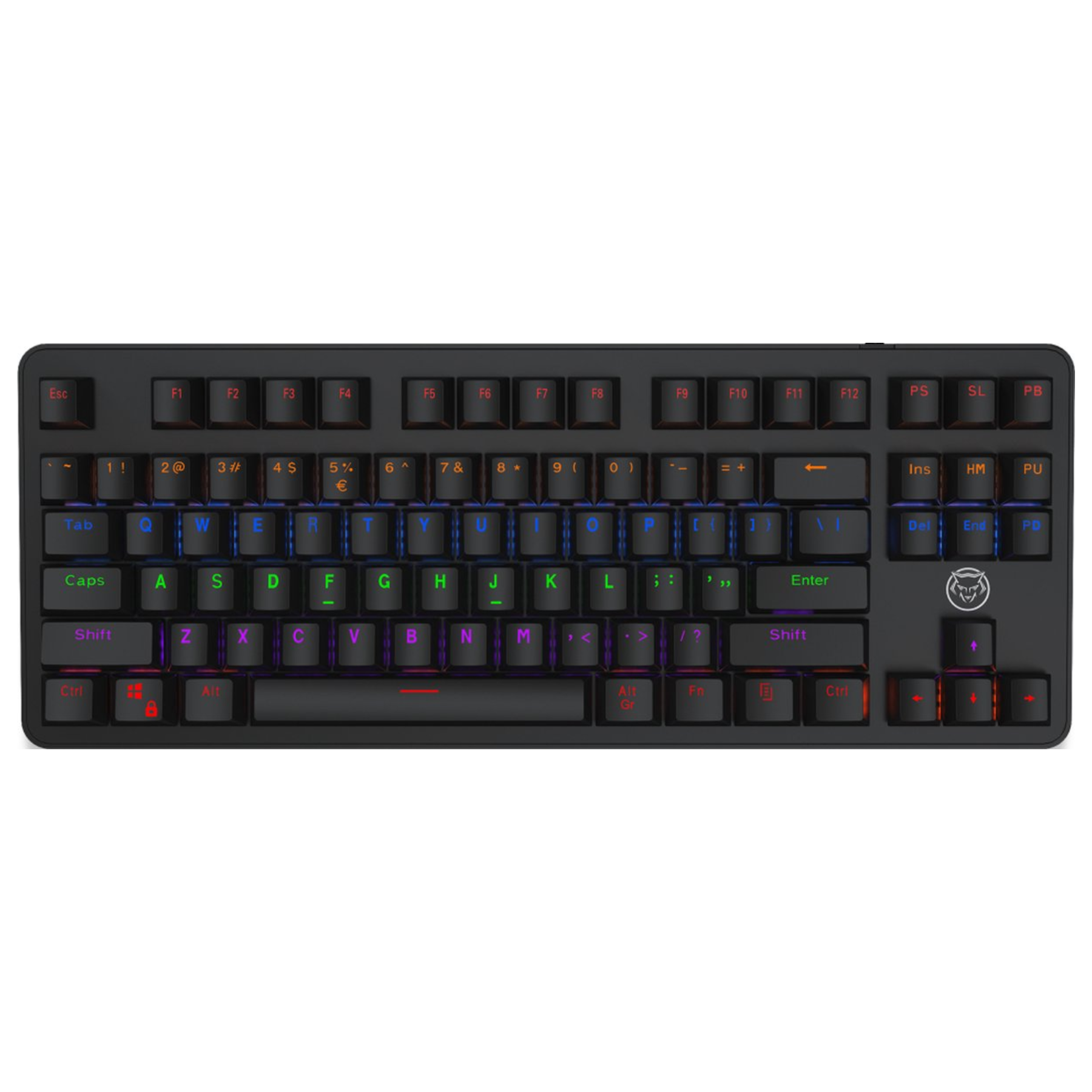 De Qware Houston is een mechanical gaming toetsenbord met 87 toetsen. Je sluit het toetsenbord aan met een USB-kabel, waarna je direct aan de slag kunt. Je kunt genieten van de kleuren van de rainbow LED illumination. Het toetsenbord heeft een compact design en de toetsen gaan 50 miljoen toetsaanslagen mee en hebben een response tijd van 100 aanslagen per seconde.