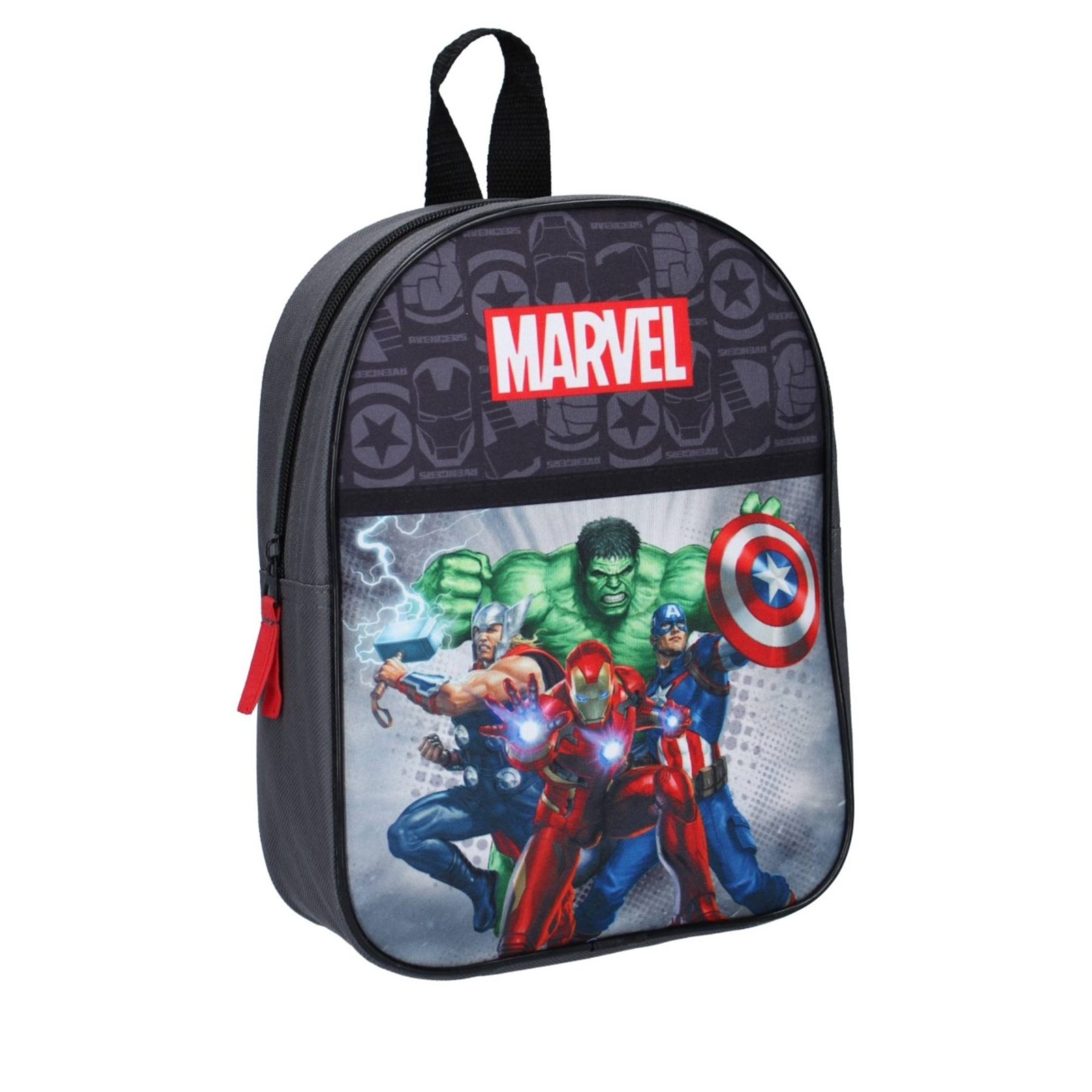 De ongelooflijke Hulk, Captain America, Iron Man en Thor. Wat een geweldig team vormen deze vier Avengers-superhelden samen! Op de voorkant van deze Avengers rugzak zien we de superhelden als een team. Samen zorgen ze voor grote avonturen! De rugzak is gemaakt van grijs polyester. De tas heeft een ruim hoofdvak waar je een snack, speelgoed, lunchbox en een drinkbeker in kwijt kunt.De schouderbanden zijn in lengte verstelbaar en het handvat maakt het gemakkelijk om de tas op te hangen.