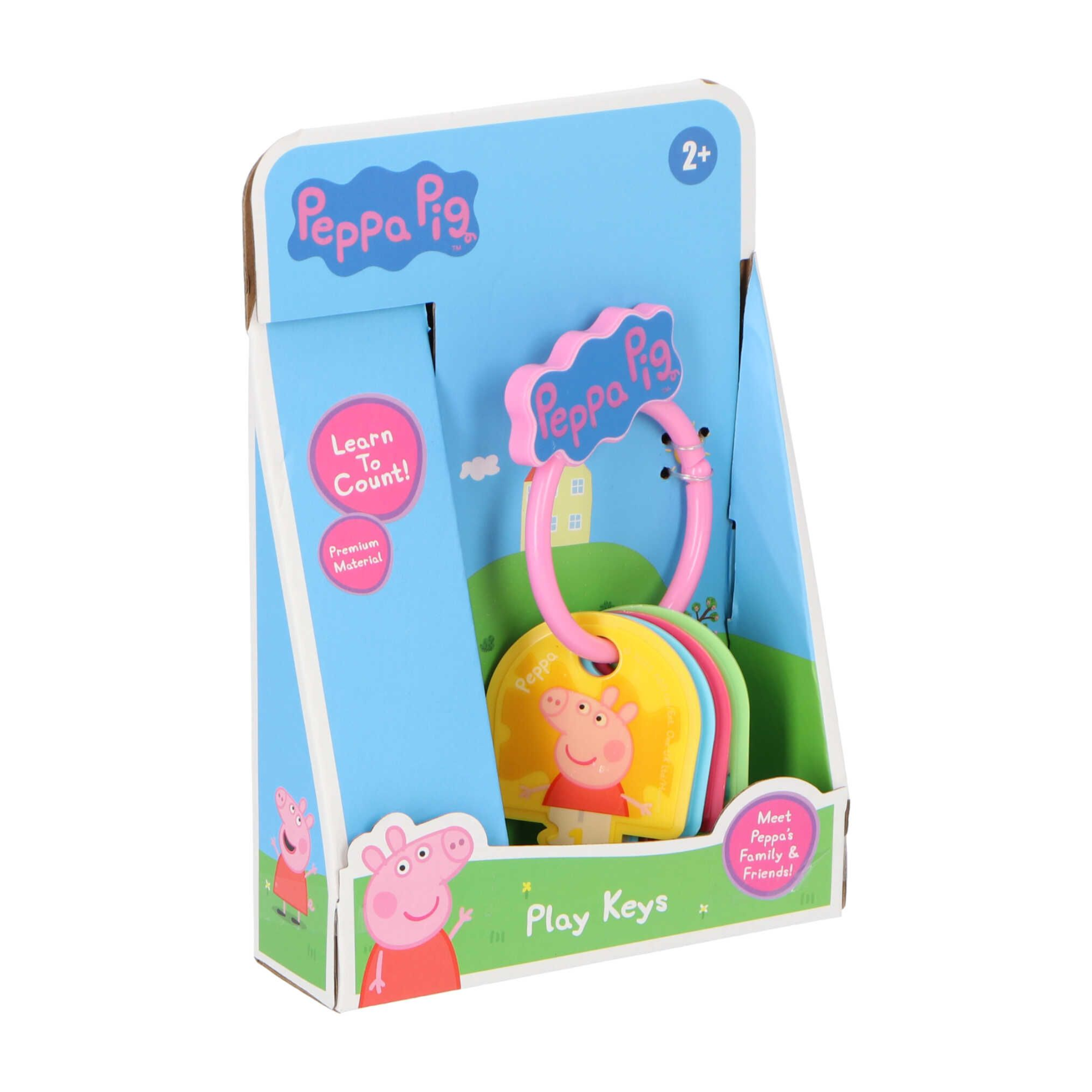 Breng fantasierijk speelplezier tot leven met deze Peppa Pig Speelsleutels! Deze vrolijke set bestaat uit meerdere kunststof “sleutels” in heldere kleuren, allemaal bevestigd aan een grote, flexibele ring met het herkenbare Peppa Pig-logo. Op elke sleutel staat een leuk Peppa-figuurtje of thema, waardoor kinderen spelenderwijs kunnen ontdekken en leren.